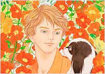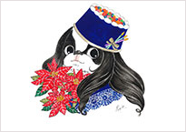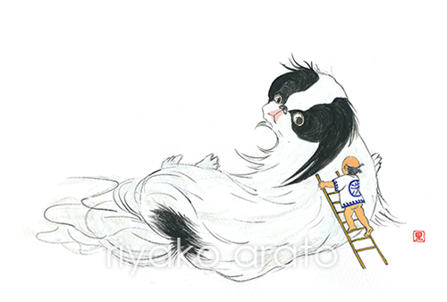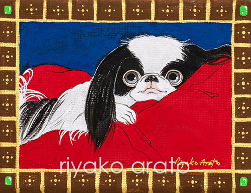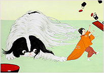 大きな犬(狆)をモチーフにした初出版の絵本描き下ろしイラスト。